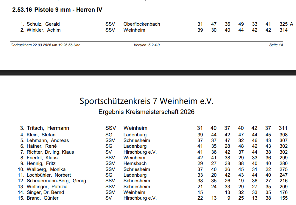 Die Ergebnisliste der Kreismeisterschaft SSK7 Weinheim 2026 finden Sie